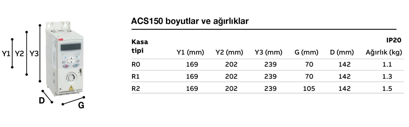 ACS150, besleme gerilimi: 1FAZ 200-240 V AC
